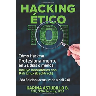 Reseña del editor ¿Siente curiosidad sobre cómo realizan pruebas de intrusión los hackers? ¿Ha querido tomar cursos presenciales de hacking ético pero no tiene el tiempo o el dinero para hacerlo? Este libro tiene la respuesta para Usted. Con tan sólo 2 horas de dedicación diaria usted puede convertirse en hacker ético profesional! En él encontrará información paso a paso acerca de cómo actúan los hackers, cuáles son las fases que siguen, qué herramientas usan y cómo hacen para explotar vulnerabilidades en los sistemas informáticos. Aprenderá además cómo escribir un informe profesional y mucho más! El libro tiene un enfoque práctico y ameno e incluye laboratorios detallados con populares sistemas operativos como Windows y Kali Linux 2.0. Tópicos cubiertos: • El círculo del hacking • Tipos de Hacking, modalidades y servicios opcionales • Reconocimiento pasivo y activo • Google hacking, consultas WhoIs y nslookup • Footprinting con Maltego y Sam Spade • Métodos de escaneo y estados de puertos • Escaneo con NMAP • Análisis de vulnerabilidades con NeXpose y OpenVAS • Enumeración de Netbios • Mecanismos de hacking • Frameworks de explotación • Metasploit Framework (msfconsole, web y Armitage) • Ataques de claves • Ataques de malware • Ataques DoS • Hacking de Windows con Kali Linux y Metasploit • Hacking inalámbrico con Aircrack-ng • Captura de claves con sniffers de red • Ataques MITM con Ettercap y Wireshark • Ingeniería social con el Social Engineering Toolkit (SET) • Phishing e inyección de malware con SET • Hacking de Metasploitable Linux con Armitage • Consejos para escribir un buen informe de auditoría • Certificaciones de seguridad informática y hacking relevantes Sobre la autora: Karina Astudillo es una consultora de sistemas con más de 20 años de experiencia en tecnologías de información. Es experta en seguridad informática, hacker ético certificado (CEH) y tiene a su haber otras certificaciones en IT como CCNA Security, CCNA Routing & Switching, CCNA Wireless, Cisco Security, Computer Forensics US, HCSA, HCSP, Network Security, Internet Security, SCSA y VmWare VSP. En la actualidad se desenvuelve como Gerente de IT de Elixircorp, empresa consultora de seguridad informática especializada en hacking ético y computación forense. Karina es además docente de la Maestría de Seguridad Informática Aplicada (MSIA) y del Cisco Networking Academy Program (CNAP) de la Escuela Superior Politécnica del Litoral (ESPOL), en donde ha sido instructora desde 1996.Tapa blanda=300 páginas. Editor=Createspace Independent Pub; Edición: 2 (7 de julio de 2016). Colección=Cómo hackear. Idioma=Español. ISBN-10=1535174064. ISBN-13=978-1535174060. Valoración media de los clientes=3.2 de un máximo de 5 estrellas 9 opiniones de clientes. Clasificación en los más vendidos de AmazonSeguridad informática=nº11.231 en Libros (Ver el Top 100 en Libros) .zg_hrsr { margin: 0; padding: 0; list-style-type: none; } .zg_hrsr_item { margin: 0 0 0 10px; } .zg_hrsr_rank { display: inline-block; width: 80px; text-align: right; } n.° 7 en Libros > Informática, internet y medios digitales >.